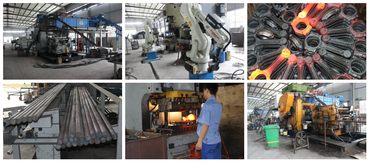 由于連桿鍛件鍛造成形工藝特點(diǎn),其成形設(shè)備可采用模鍛錘、熱模鍛壓力機(jī)、摩擦壓力機(jī)等。在模鍛錘上鍛造成形零件時(shí),一般采用整體模具多模膛模鍛(拔長(zhǎng)、滾擠、預(yù)鍛、終鍛等)。在熱模鍛壓力機(jī)上鍛造成形零件時(shí),要先在輥鍛機(jī)或其他設(shè)備上進(jìn)行拔長(zhǎng)、滾擠等制坯工步,然后在熱模鍛壓力機(jī)上進(jìn)行預(yù)鍛及終鍛。由于摩擦壓力機(jī)不適合多模膛模鍛,因此鍛造成形零件時(shí)也要先在其他設(shè)備上進(jìn)行制坯工步,預(yù)鍛及終鍛時(shí)一般也需要分別在兩臺(tái)設(shè)備上完成。連桿冷校正一般在摩擦壓力機(jī)或液壓機(jī)上進(jìn)行。連桿冷精壓一般在精壓機(jī)、液壓機(jī)或摩擦壓力機(jī)上進(jìn)行。